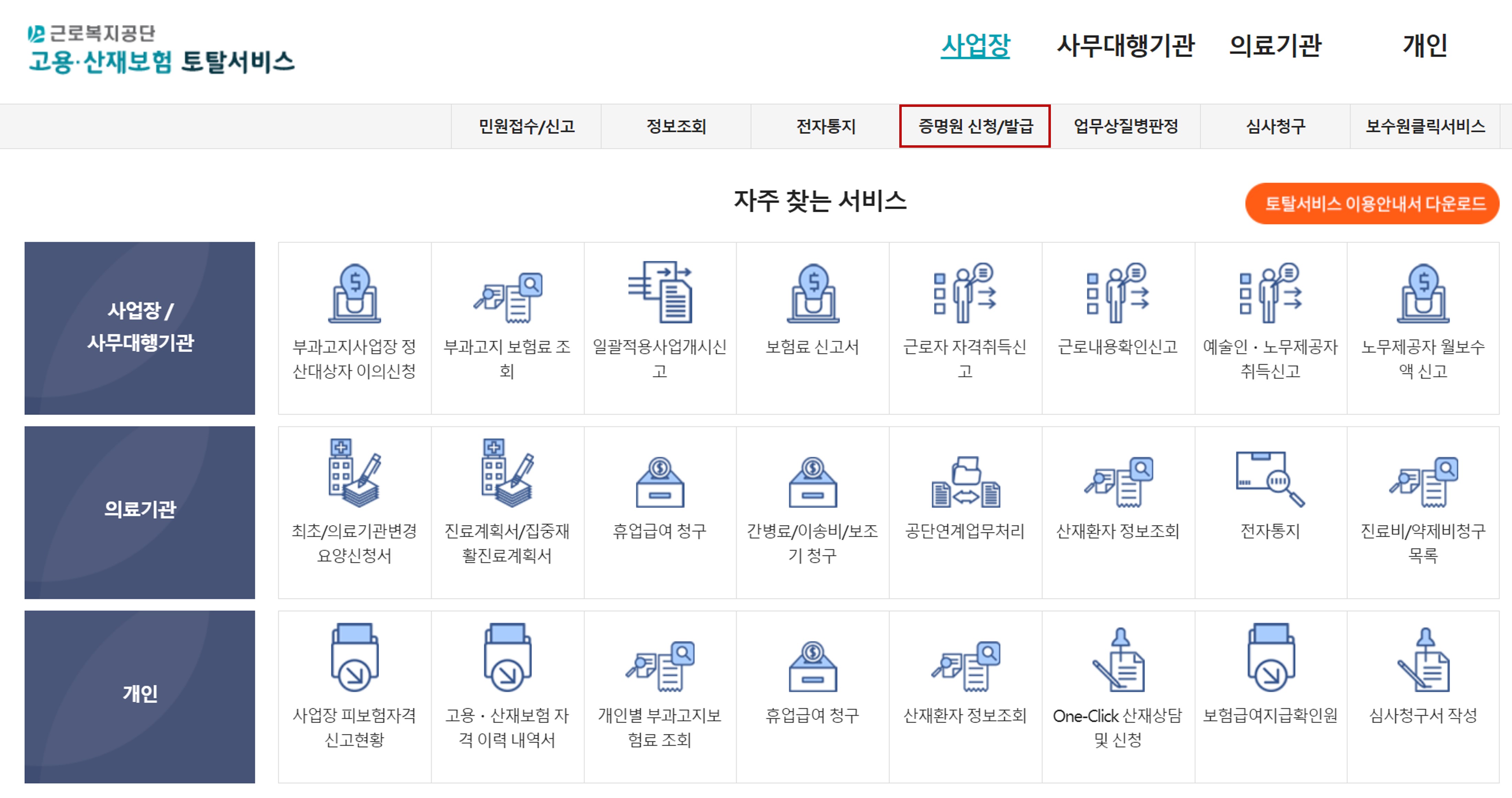 사이트주소: https://www.comwel.or.kr/comwel/landing.jsp